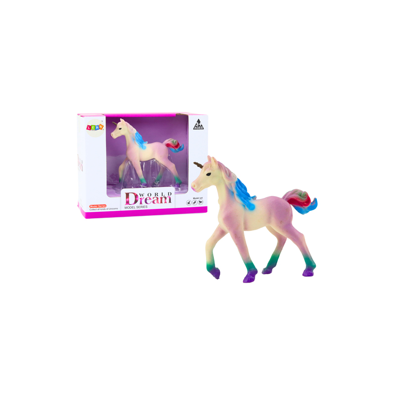 Vijolična figurica samoroga s pisano grivo in repom, izdelana iz trdnega in trpežnega materiala, navdušuje z realističnimi detajli. Lahko je element zabave, očarljiv okras za otroško sobo ali dragocen element kolekcije.